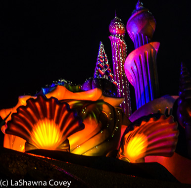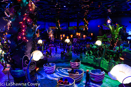 My absolute favorite place, a place I could have just camped out forever in if it wasn’t for the hordes of young children, was Ariel’s Grotto, or as I preferred to call it, Ariel’s Acid Trip. Seriously, I can only imagine what this place would be like if you were high on hallucinogens, because the imagery itself in real life was fantastical enough. Whoever were the art designers for this place should be commended, because I adored the crazy colors and outlandish decorations. I kept going back, because I wanted to take it all in and sear it to my permanent memory. The grotto is definitely geared more toward young children in terms of rides and play areas, but it is a place anyone who loves crazy colors can enjoy for themselves.