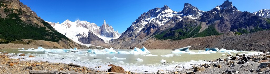 The final part of the hike is a short hike up the rocks until you are overlooking Laguna Torre. That view makes any sort of huffing and puffing worth it. I knew this lake is not a brilliant blue like Laguna de Los Tres, but the spiky mountains look close enough to touch, and the lake had a wide variety of icebergs floating from the glacier by the lake. Truthfully I thought was even better than what I was expecting.