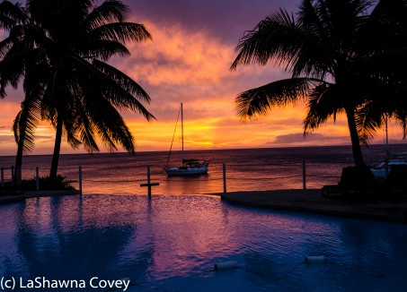 About half the time I was on Tavenui, it was sunny and beautiful, and half the time it was cloudy. On the days it was sunny, the sunsets were absolutely gorgeous. The resort faced west, so we got full view of sunsets. It was a wonderful and relaxing to end the day by the seaside pool with a drink in hand, taking in all the beautiful colors of the sunset. What was amazing is how the sunset colors differed by day. Some days the sky exploded into a sea of bright pink and orange, and other days, it was more orange and blue (at least the water), and others gave off a more of a silver and blue cast.
