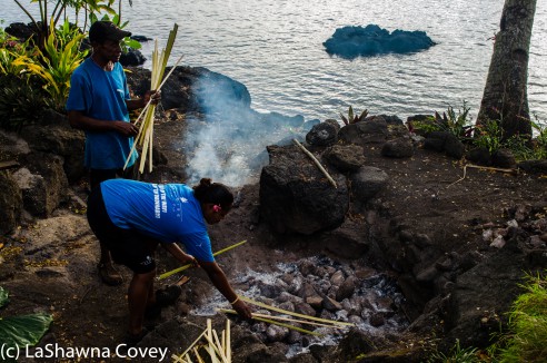 This resort is sort of all inclusive, or can easily be. My package gave me so many meals, and all the soft drinks I could consume (booze was extra, and who doesn’t want to enjoy a tropical paradise with tropical liquor?) Every meal was outside, and the dinners in particular were very nice. One of the nights I was there we had a traditional Fijian lovo, sort of like a Fijian barbecue or luau, where all the meat was wrapped in local banana leaves and cooked over an open fire. It was interesting to see them prepare the meat and starches and then get to indulge in it afterward.