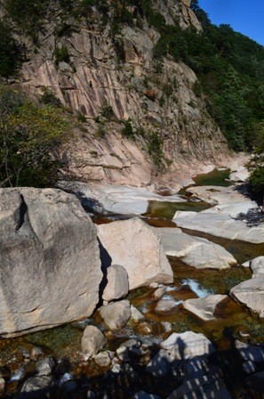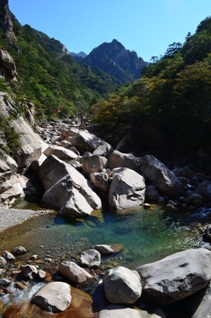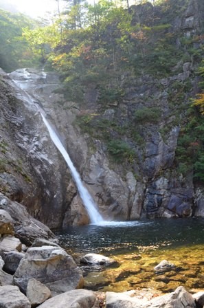At the end of the hike is the 40m high Biryong Falls, which means “Flying Dragon”, because of the shape the water evokes. It’s a very pleasant place to sit by the water and silently take in the water and scenery or enjoy a picnic lunch with a group of other hikers, or at least partake in some of the food the very nice older women offered me.