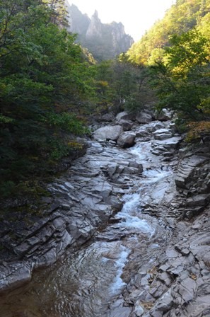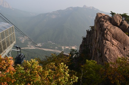 It’s very easy to reach Seoraksan National Park. The nearest large city is Sokcho and there are numerous busses departing from the Dong Seoul bus station and Seoul Express Bus Terminal (about every 30 minutes during the day). The trip only takes about three hours, so I took an evening bus to Seoraksan Thursday night, so I could start hiking early Friday morning before the crowds hit. To make it easy for hiking, I chose to stay at a motel (The Seorak Morning Inn) in the village of Seorak-dong, which is about a 1.5 km easy, pleasant walk or short bus ride to the park entrance.