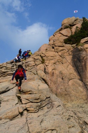 My ultimate goal was the top of Gwongeumseong, which was marked by the Korean national flag blowing in the wind. Getting up was interesting, because the path was a bit narrow in parts, and I had to pull myself along with a rope during parts of the ascent. And it was even windier on top of the mountain. Like always, I personally found it easier to ascend and climb up rather than descend and climb down. Coming off the mountain was an interesting journey. When you see nimble, able Korean hikers descending on their butt, you KNOW it is a bit treacherous for someone like me who is clumsy and decidedly not sure-footed. But I made it in one piece, ready for more hiking.