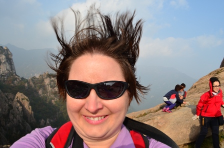 But then, I hit the top. I got to the summit of Ulsan Bawi. I could see for miles around, all the way to the town of Sokcho and the East Sea. Sure it is windy as all get out, but it’s worth it, because I MADE IT. No, it’s not like summiting Everest or anything difficult like that. But my thighs were certainly shaking enough on the way down.