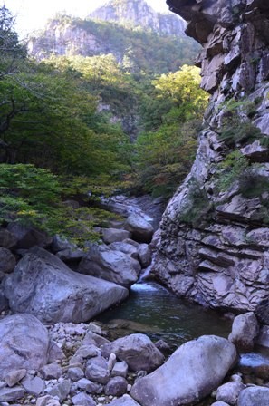 But as beautiful and peaceful Biryong Falls is, I didn’t relax, because I had one more hike planned for the day. And this hike is considered one of the most difficult hikes in Seoraksan National Park. It is also one of the popular ones, because of the beautiful, panoramic view from the top of the 876m high Ulsan Bawi. Because the first two hikes were pretty easy, I wasn’t really tired, which is good, because the Ulsan Bawi is an ass smoker, or more specifically, a thigh smoker. It starts out easy enough with beautiful scenery.