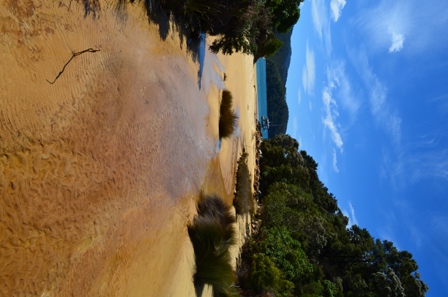 Awaroa Hut is right on the edge of Awaroa Inlet, and it was here that the tidal differences in Abel Tasman National Park are the most starkly evident. At high tide, the entire beach is covered in water and most of the path along the beach was under water. However, at low tide, you could walk across the entire inlet (though your feet will still get wet, because the inlet is never entirely free of water).