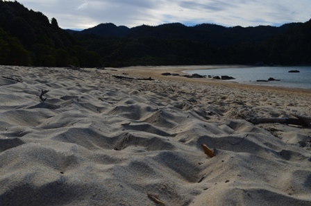 10 minutes later, I gratefully dropped my pack in the shade of trees as I finished and arrived at the beach. It was four days and 38 kilometers of beautiful coast walk. There are busses and water taxis for the return journey, but I elected for the bus, because it would take me back to Nelson in less time and less money than it would have cost me to take a water taxi back to Marahau and then a bus back to Nelson. The only thing that stood between me and a refreshing shower (which I needed very much) was a three hour bus ride back to my hostel. But I did it. I completed my first multi day hike and I was ready for more.