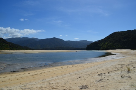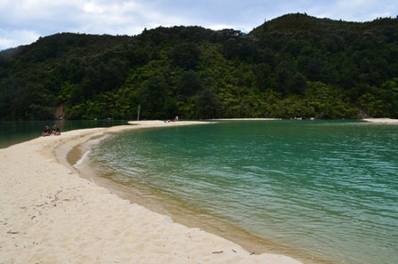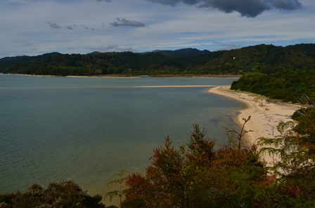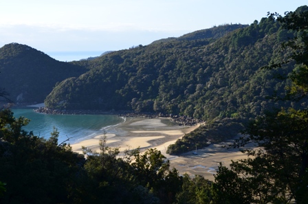 It took about 20 minutes to cross the inlet. Once across, I donned my hiking boots for the final six kilometers to Totaranui Beach, which was the final end spot for me. You can add another day of hiking out to Wainui Bay, but I elected not to when I realized that getting transportation out of that site was rather difficult. Most of the hike was again in lush coastal forests and up hills and down hills. Occasionally a sea view would emerge and then the final beach trek at Waiharakeke Beach.
